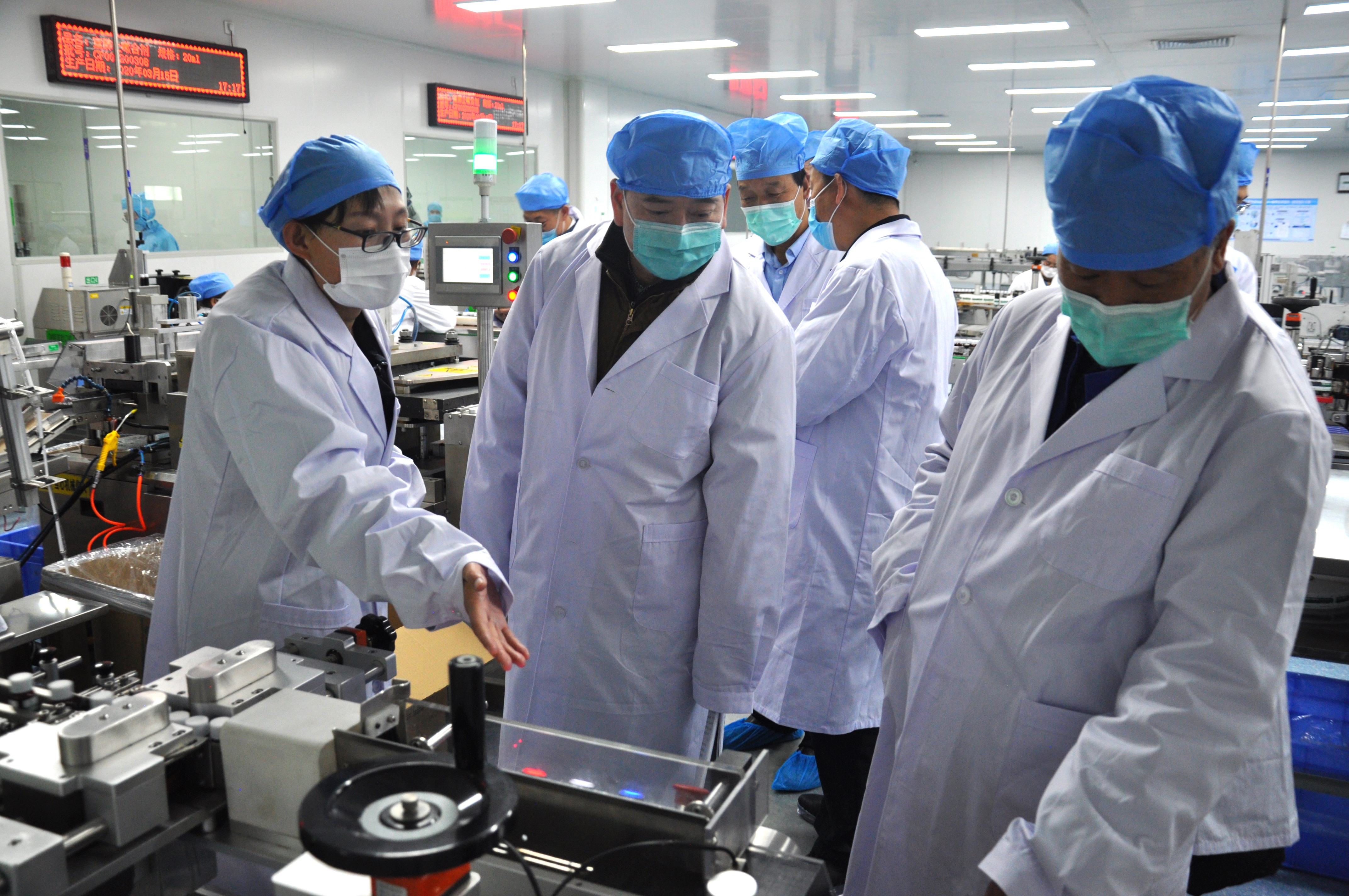 張嚴明一行走進生產車間,詳細了解防控措施落實、生產運行等情況。公司黨委委員、常務副總經理宋敏平匯報:普安公司依靠甘肅特藥資源優勢生產宣肺止嗽合劑,產品已覆蓋26個省市,單品種銷售收入近3億元。2019年8月1日公司劃轉省藥業集團,今年已啟動宣肺止嗽合劑二期擴產改造項目,預計第三季度完成建設。公司按照中央、省委、省政府的決策部署,一手抓疫情防控、一手抓復工復產,已生產75%醫用酒精48噸,全部統一調配使用;同時,公司捐贈了75%醫用酒精5噸多、宣肺止嗽合劑6700瓶。在聽宋敏平關于公司有關工作匯報后,張嚴明對企業疫情防控、復工復產和政策落實等工作給予了充分肯定,對企業員工的辛勤付出表示感謝。