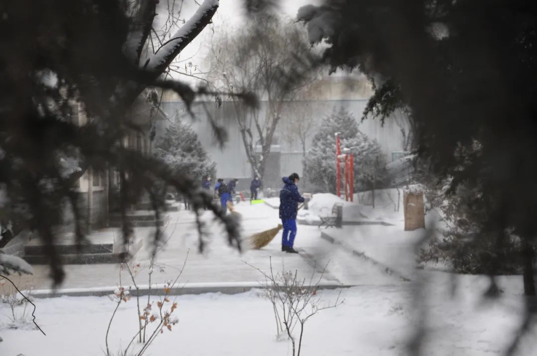 盡管風很大,臉被吹的通紅,盡管氣溫很低,手被凍得發僵,但大家齊心協力,你鏟我掃,輪流上陣,熱火朝天的掃雪場面和團結的力量讓這個冬日顯得格外溫暖,忙碌的身影構成了道道亮麗的風景線。
