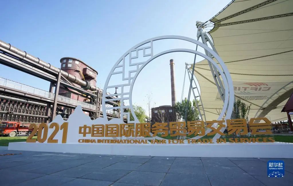 這是2021年8月31日在北京拍攝的2021年中國國際服務貿易交易會首鋼園展區。新華社記者 陳曄華 攝