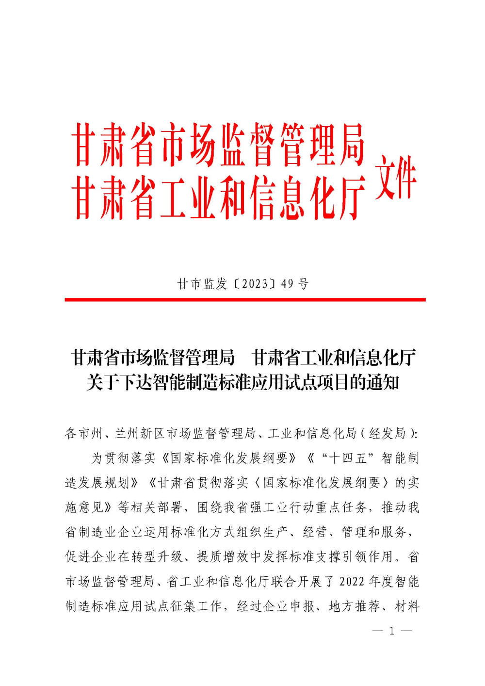 省級智能制造標準應用試點項目建設是為貫徹落實《國家標準化發展綱要》《“十四五”智能制造發展規劃》《甘肅省貫徹落實〈國家標準化發展綱要〉的實施意見》等相關部署,圍繞我省強工業行動重點任務,推動我省制造業企業運用標準化方式組織生產、經營、管理和服務,促進企業在轉型升級、提質增效中發揮標準支撐引領作用。