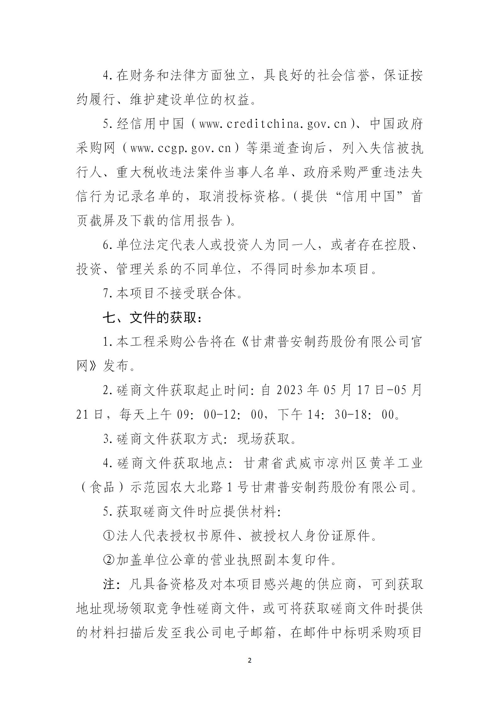 甘肅普安制藥股份有限公司變壓器增容工程競爭性磋商公告