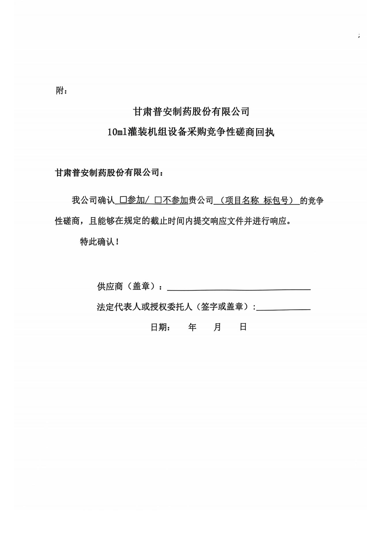 甘肅普安制藥股份有限公司10ml灌裝機組設備采購競爭性磋商公告