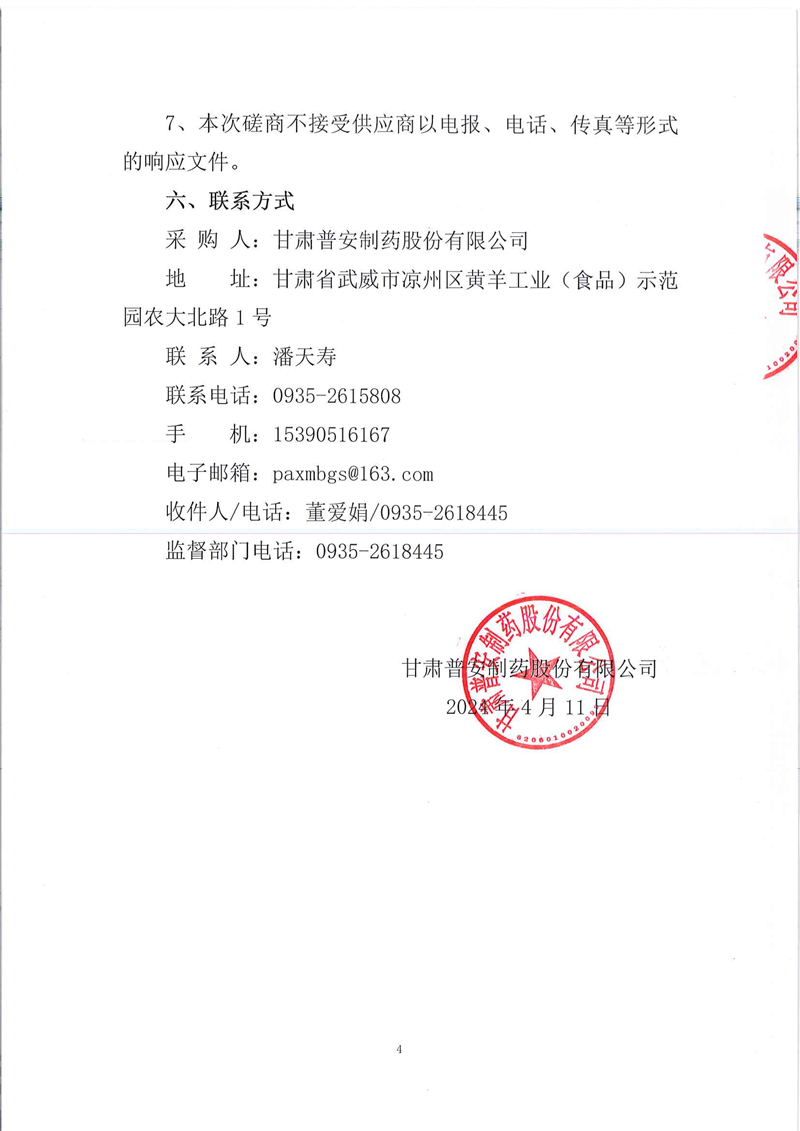 甘肅普安制藥股份有限公司2024年基礎設施改造項目-廠房維修工程競爭性磋商公告