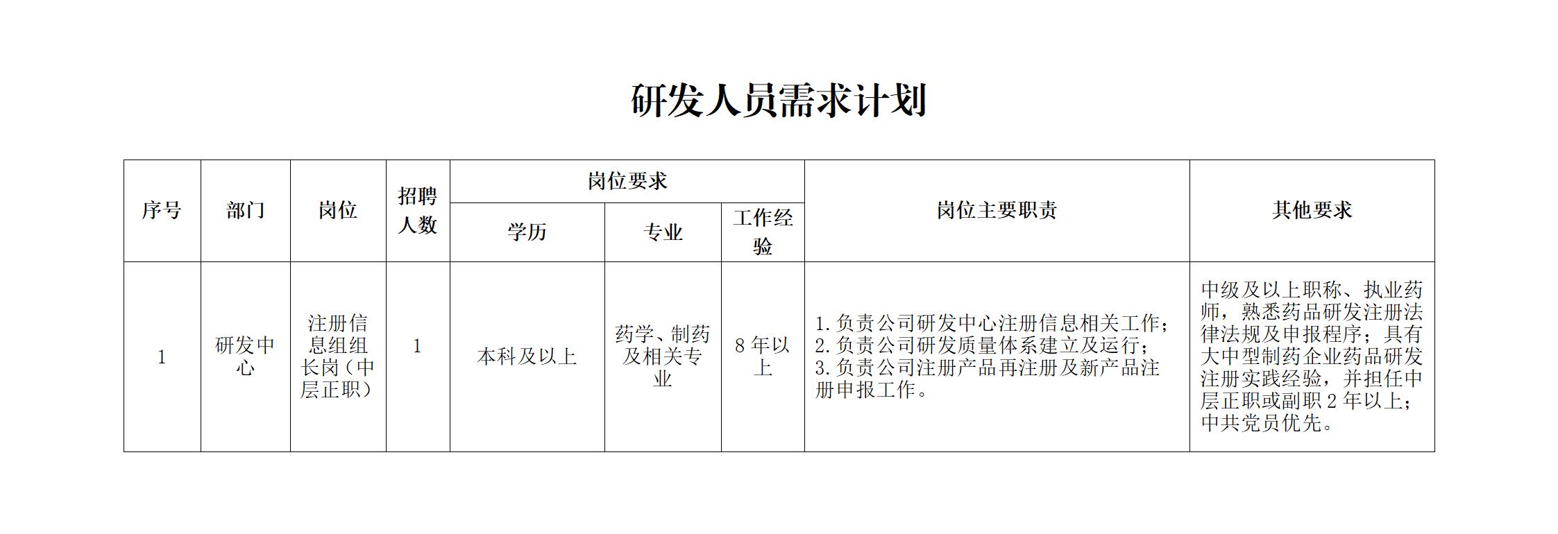 甘肅普安制藥股份有限公司 關于公開招聘研發(fā)人員的公告