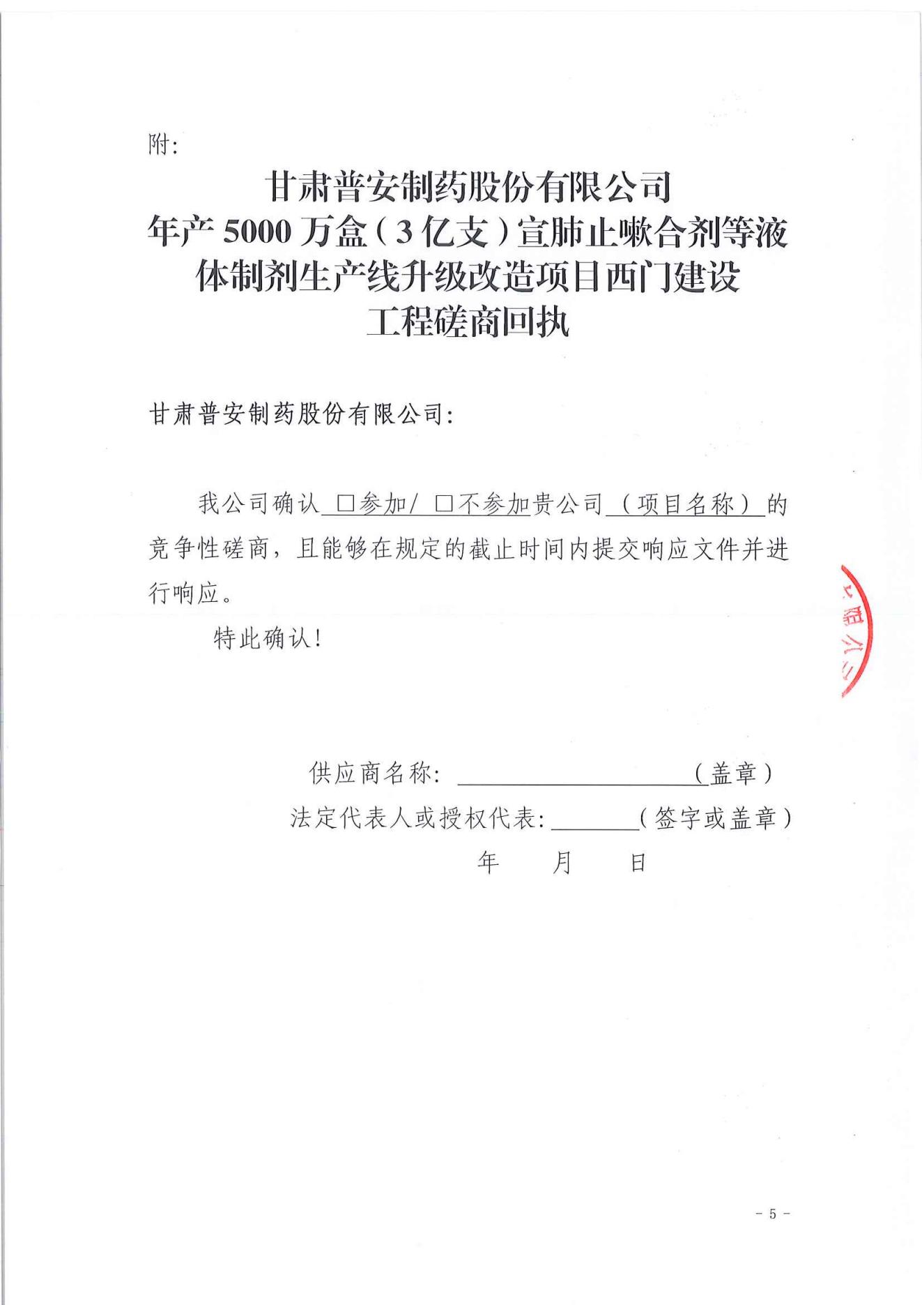 甘肅普安制藥股份有限公司年產5000萬盒(3億支)宣肺止嗽合劑等液體制劑生產線升級改造項目西門建設工程競爭性磋商公告