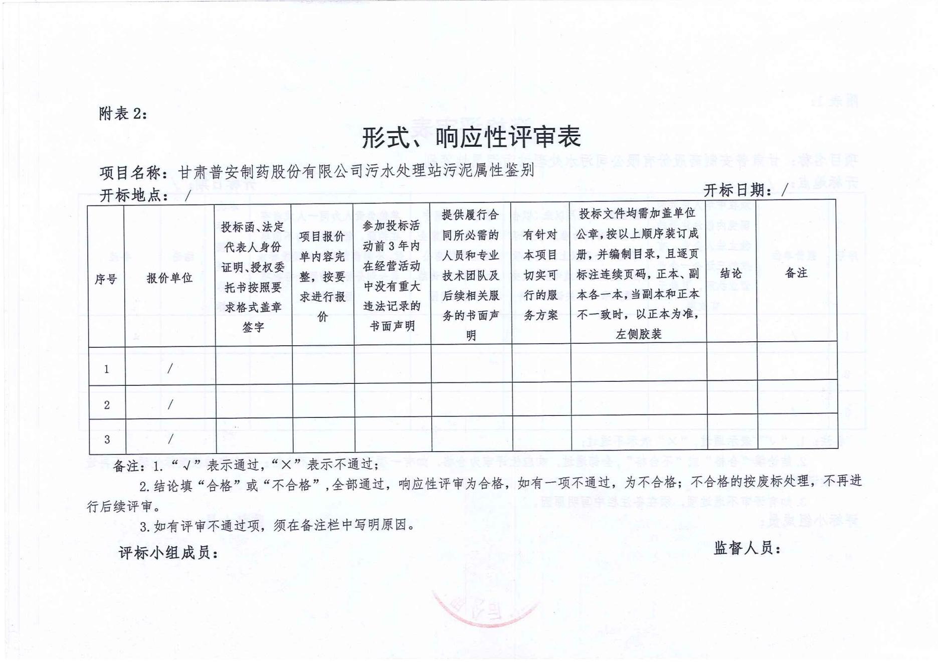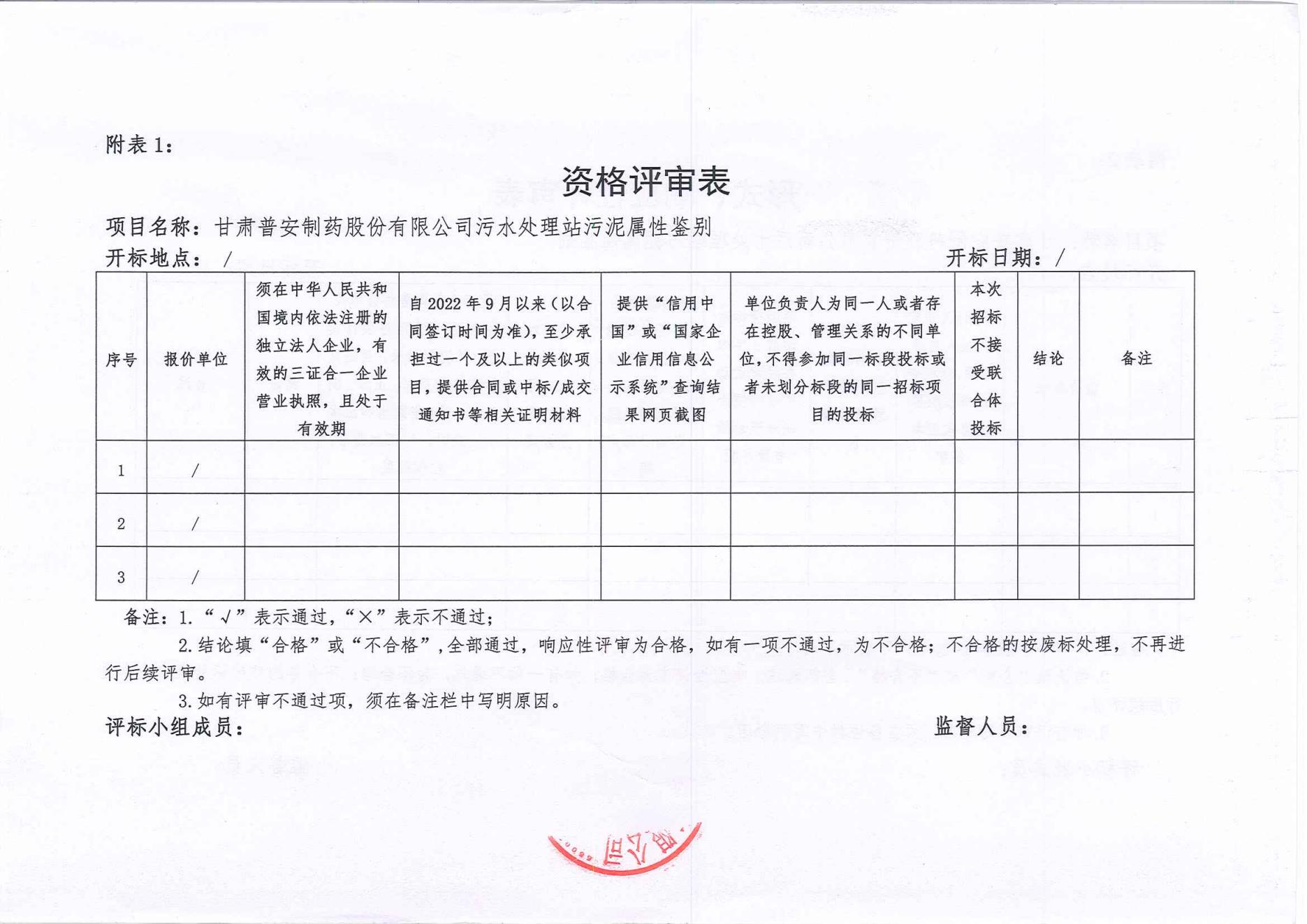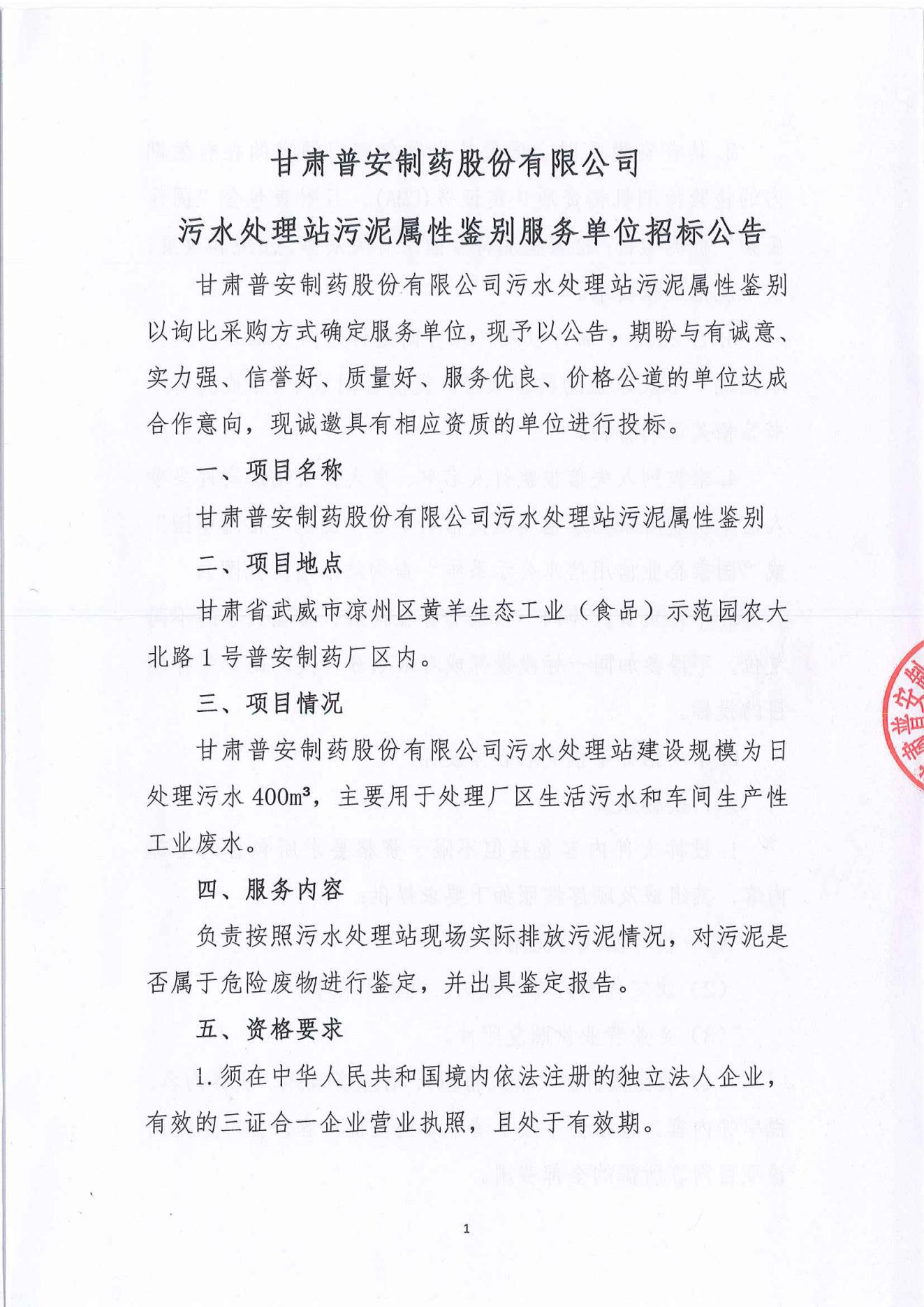 甘肅普安制藥股份有限公司污水處理站污泥屬性鑒別服務(wù)單位招標(biāo)公告