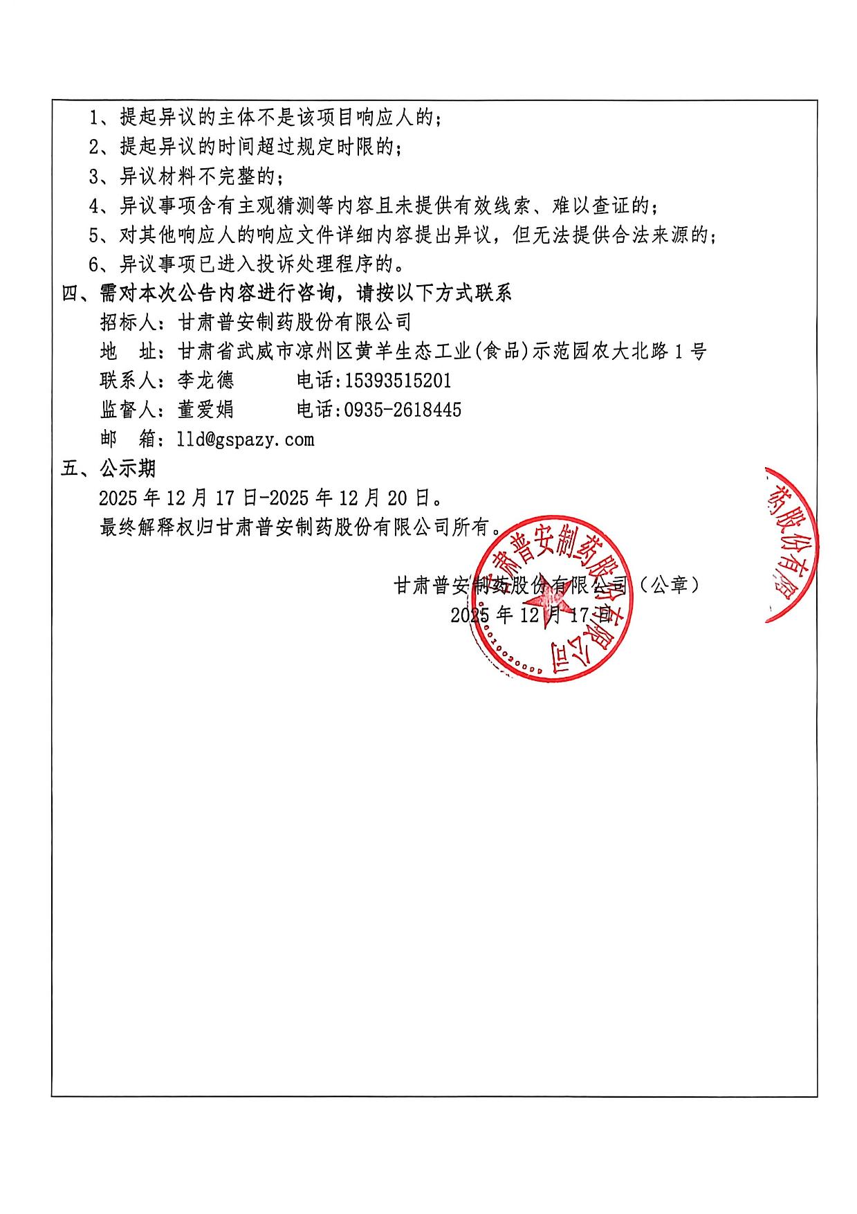 甘肅普安制藥股份有限公司2026年度宣肺止嗽合劑中藥材采購評審結(jié)果公示